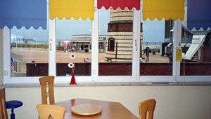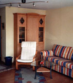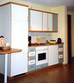 Auf einer Fläche von ca. 50 m², durchgängig Bodenlaminat, stehen Ihnen nicht nur eine komfortable, voll ausgestattete Küchenzeile mit E-Herd und Backofen, Kühlschrank und Gefrierfach, Kaffeemaschine, Wasserkocher und Toaster zur Verfügung, sondern auch ein stilvolles Wohnzimmer mit ganzseitigem Panoramafenster, inklusive TV-, Radio- sowie CD/MC-Player. Genießen Sie bereits beim Frühstück vom Esstisch aus den unvergesslichen Blick auf den Warnemünder Leuchtturm, die Dünen und die blauen Wellen der Ostsee!