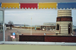 Blick auf den Leuchtturm vom Panoramafenster der Villa Brunhilde